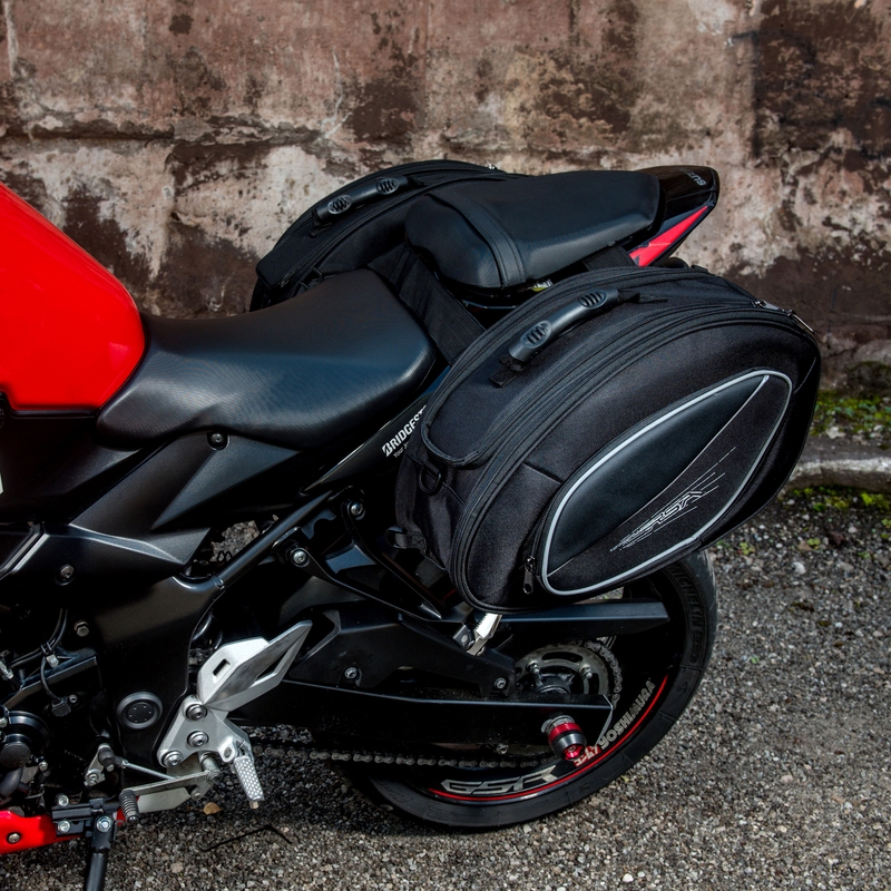 Univerzální boční brašny vyrobené z polyesteru.