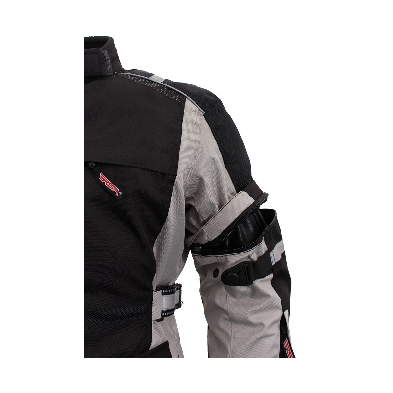 O bezpečnost se postarají homologované chrániče ramen, loktů a zádový chránič v podobě pěnové výztuhy.